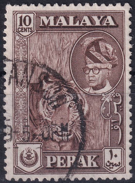 1957, Malajsko - Perak, 108a, Výplatní známka: Sultán Jussuf Izzuddin Šáh a zemské pohledy - Panthera tigris ⊙