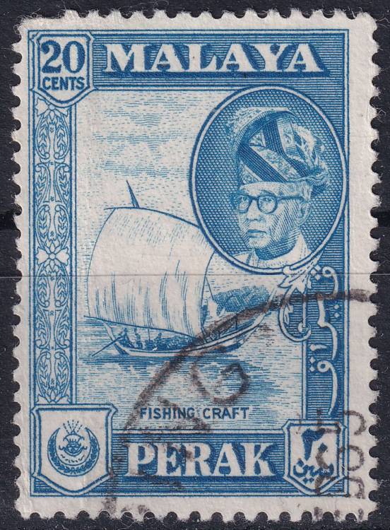 1957, Malajsko - Perak, 109, Výplatní známka: Sultán Jussuf Izzuddin Šáh a zemské pohledy - Rybářský člun ⊙