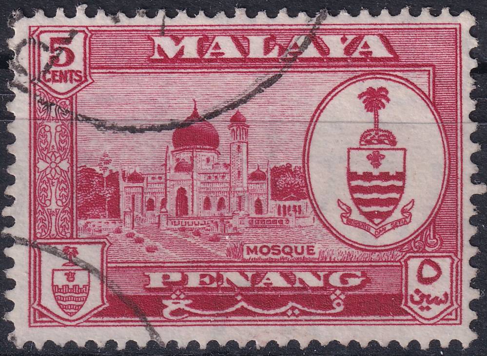 1960, Malajsko - Penang, 058, Výplatní známka: Znaky a zemské pohledy - Mešita ⊙