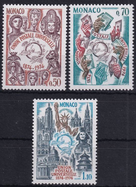 1974, Monako, 1110/1112, 100 let Světové poštovní unie (UPU) ✶✶