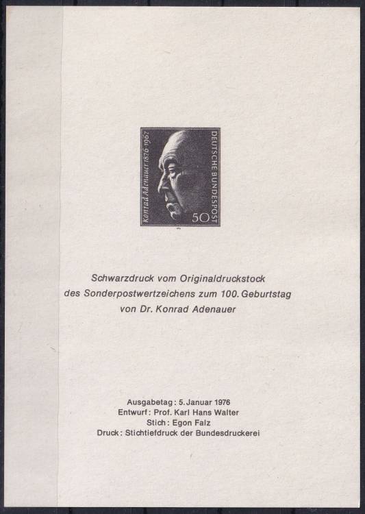 1976, Bundes, PT01, 100. výročí narození Konráda Adenauera