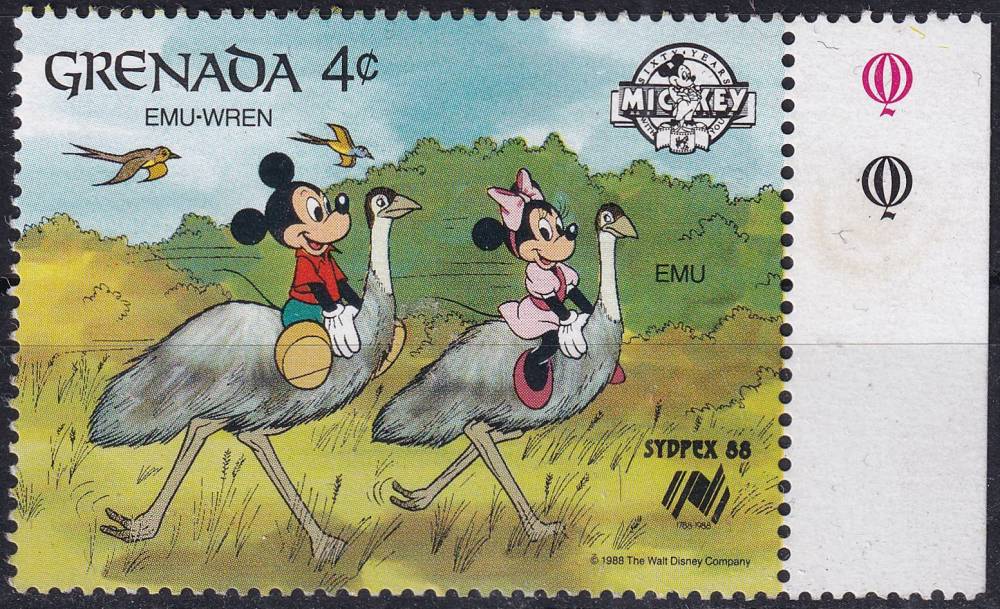 1988, Grenada, 1809, Národní výstava poštovních známek SYDPEX ´88, Sydney: 60 let Mickey Mouse: Mickey Mouse a Minnie ✶✶ o P