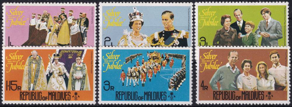 1977, Maledivy, 0680/0685C, 25 vlády královny Alžběty II. ✶✶