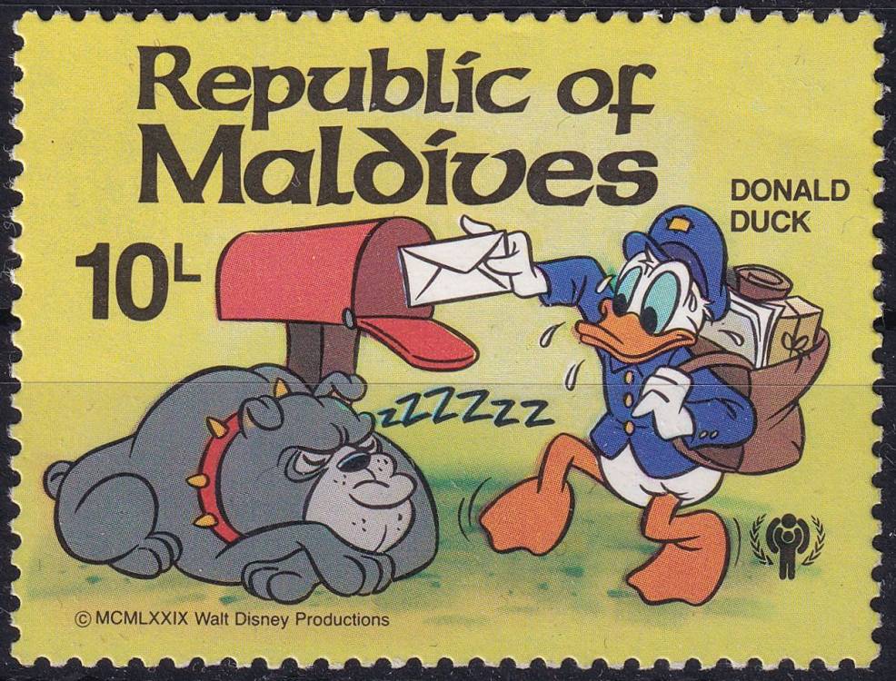 1979, Maledivy, 0853, Mezinárodní rok dětí: Figurky Walta Disneye: Kačer Donald, Buldok ✶✶