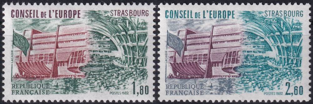 1982, Francie, SL030/031, Služební známky pro Evropskou radu: Budova Evropského parlamentu - Plenární sál ✶✶