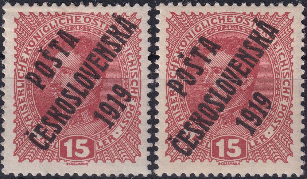 1919, ČSR I, 0038I+II, PČ 1919: Výplatní známka malého formátu z let 1916-1918 (císař Karel I.) ✶