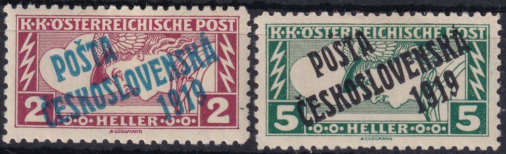 1919, ČSR I, 0057/0058B, PČ 1919: Spěšné známky pro tiskopisy z roku 1917 (obdélník s hlavou Merkura) ✶