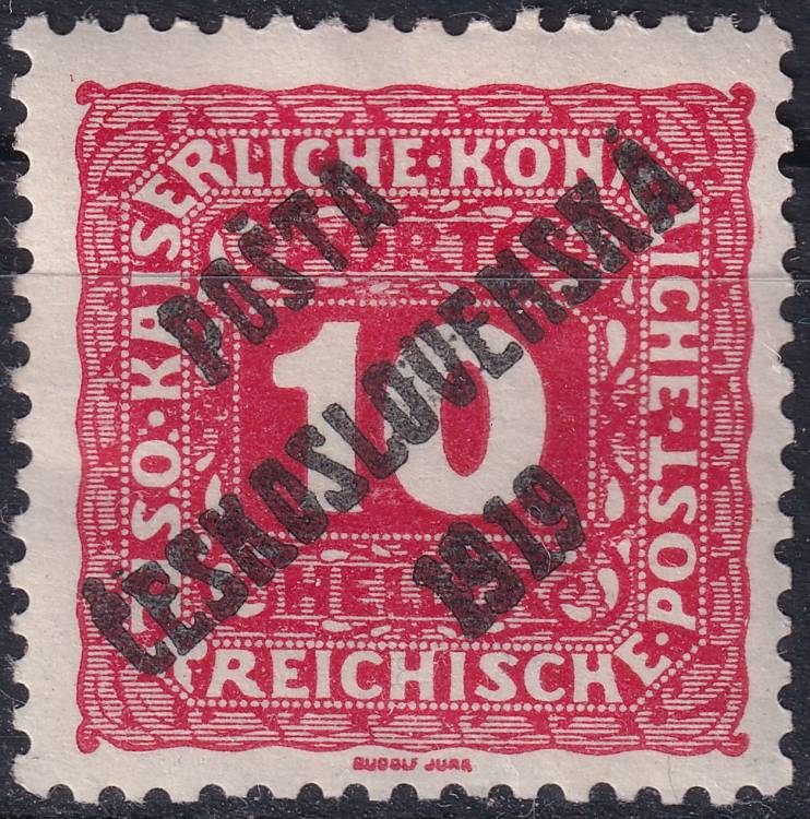 1919, ČSR I, 0073, PČ 1919: Doplatní známka z roku 1916 (malá číslice, s názvem státu) ✶