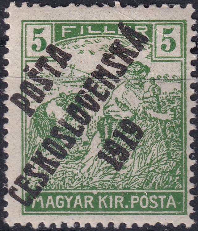 • přetisk POŠTA ČESKOSLOVENSKÁ 1919 na maďarské známce MiNr. 192