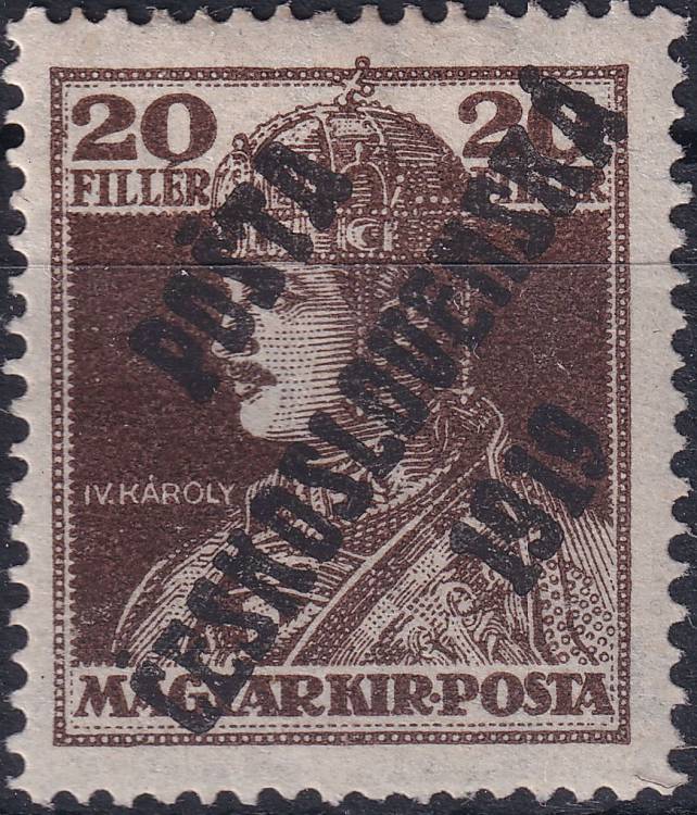 1919, ČSR I, 0120, PČ 1919: Výplatní známka z roku 1918 (král Karel IV.) ✶
