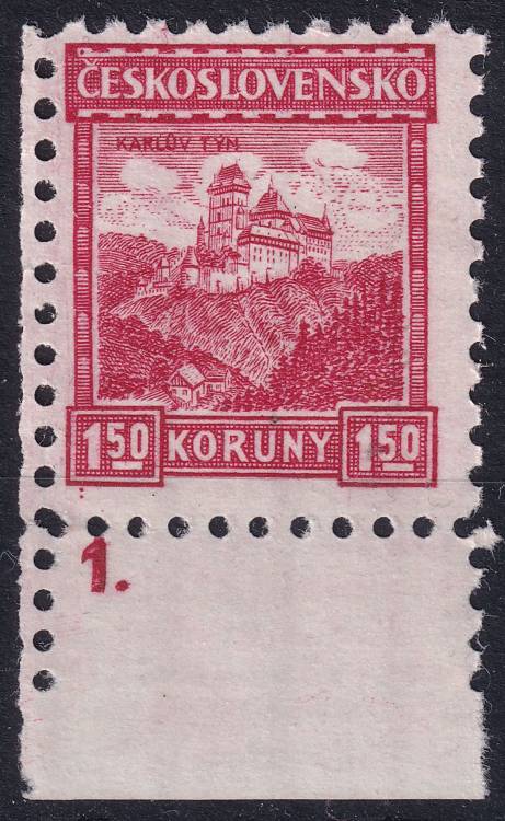 1929, ČSR I, 0220DČ, Výplatní známka: Hrady, krajiny, měst - Karlštejn ✶✶ L D