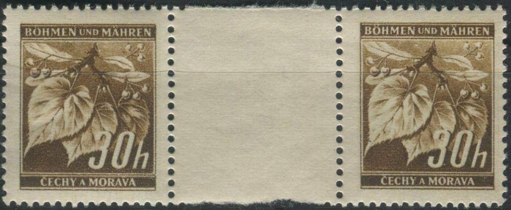 1941, Protektorát, 025M(2), Výplatní známka : Lipové listy (hlubotisk) ∗∗