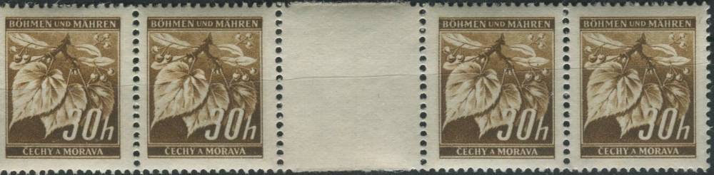 1941, Protektorát, 025M(4), Výplatní známka : Lipové listy (hlubotisk) ∗∗