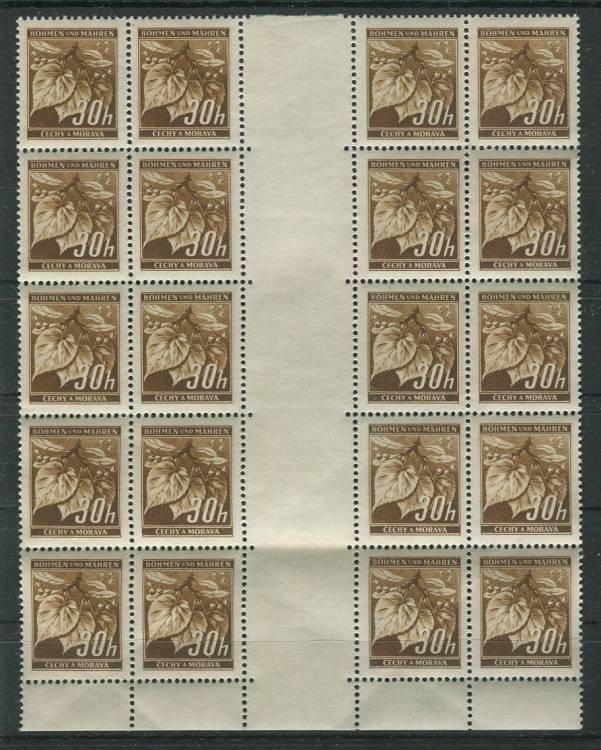 1941, Protektorát, 025M(4), Výplatní známka : Lipové listy (hlubotisk) ∗∗ ⊞ pás o