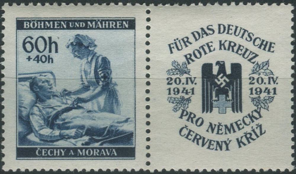 1941, Protektorát, 052KP, Německý červený kříž (II. vydání) ∗∗