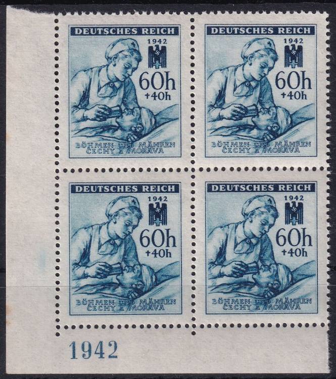1942, Protektorát, 100č, Německý červený kříž (III. vydání) ✶✶ ⊞ L D