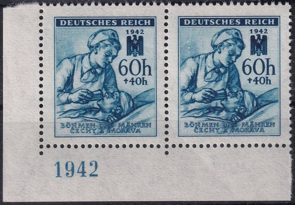 1942, Protektorát, 100čDV, Německý červený kříž (III. vydání) ✶✶ ⊟ L D