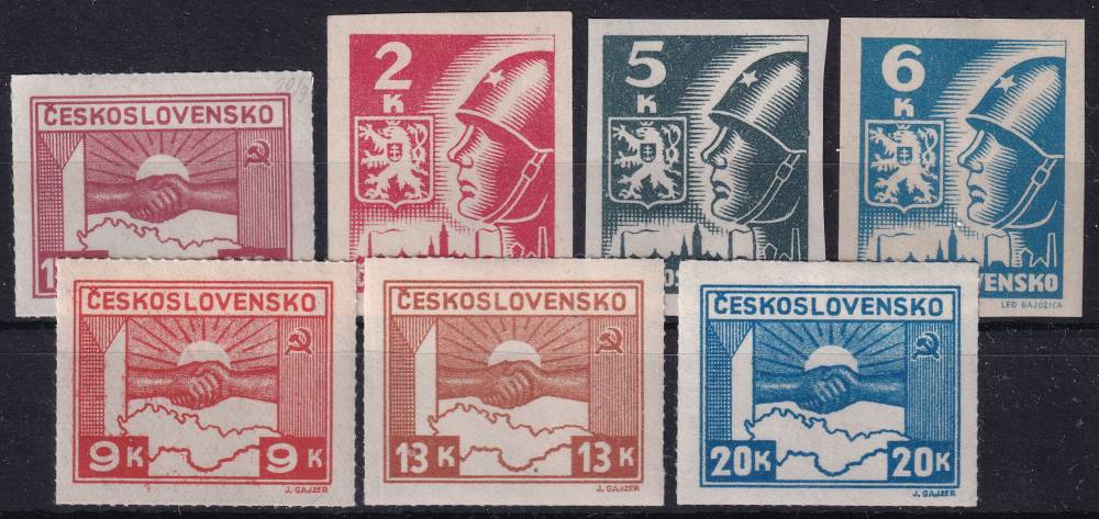 1945, ČSR II, 0353/0359, Výplatní známka: Košické vydání: Symbol spojenectví ČSR-SSSR ✶