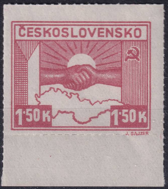 1945, ČSR II, 0353, Výplatní známka: Košické vydání: Symbol spojenectví ČSR-SSSR ✶✶ o Dš