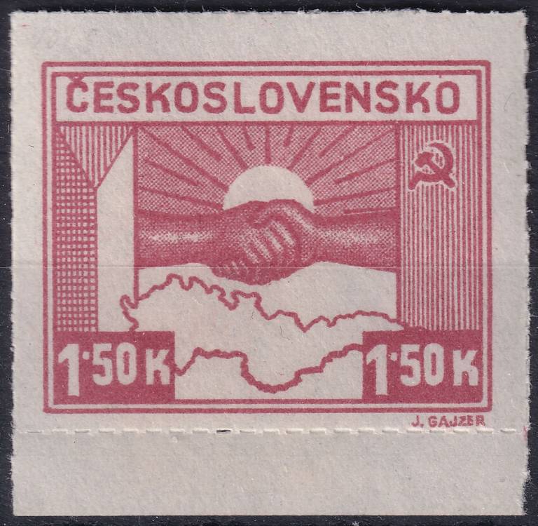 1945, ČSR II, 0353, Výplatní známka: Košické vydání: Symbol spojenectví ČSR-SSSR ✶✶ o Dú