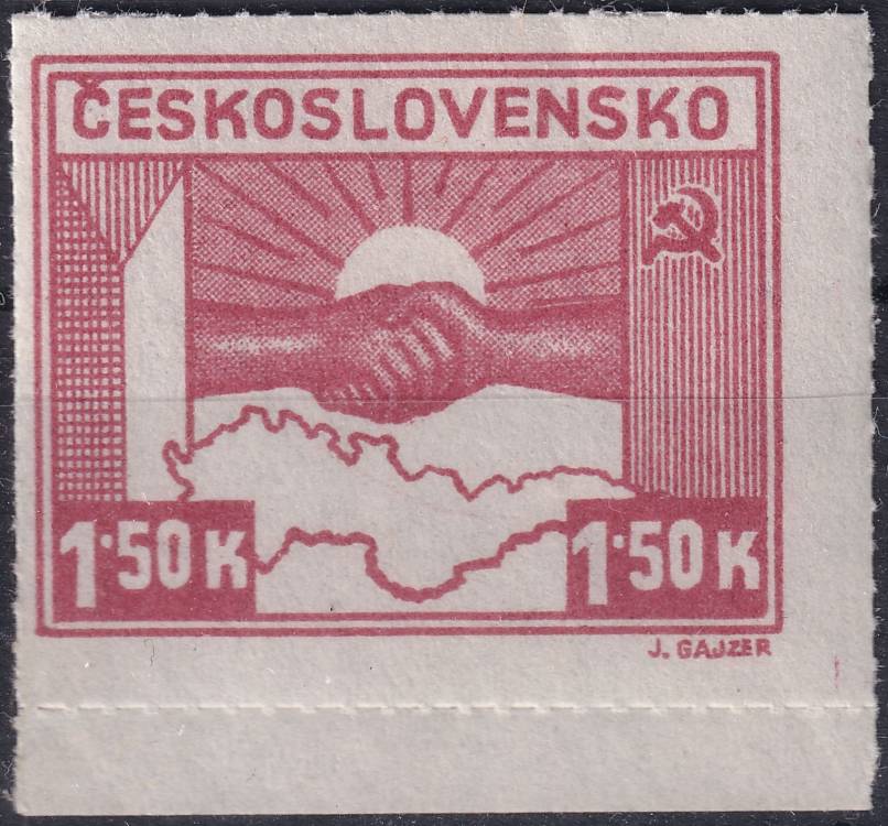 1945, ČSR II, 0353VV, Košické vydání: Výplatní známka: Symbol spojenectví ČSR-SSSR ✶✶ o D