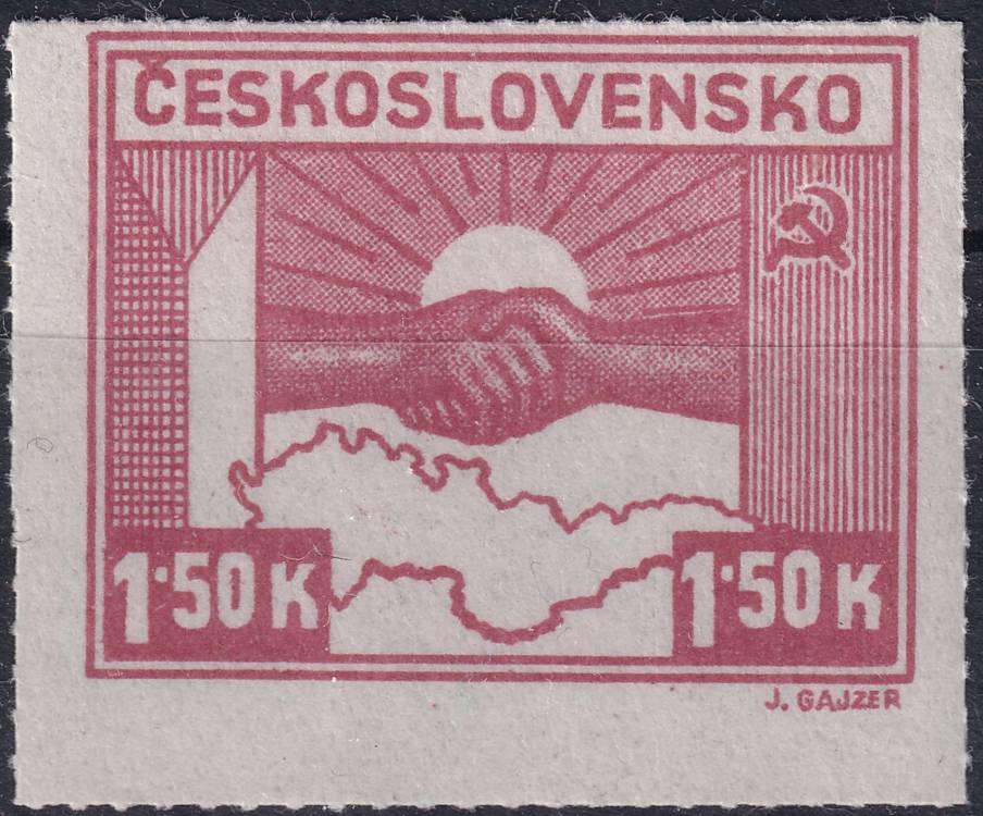 1945, ČSR II, 0353VV, Výplatní známka: Košické vydání - Symbol spojenectví ČSR-SSSR ✶✶
