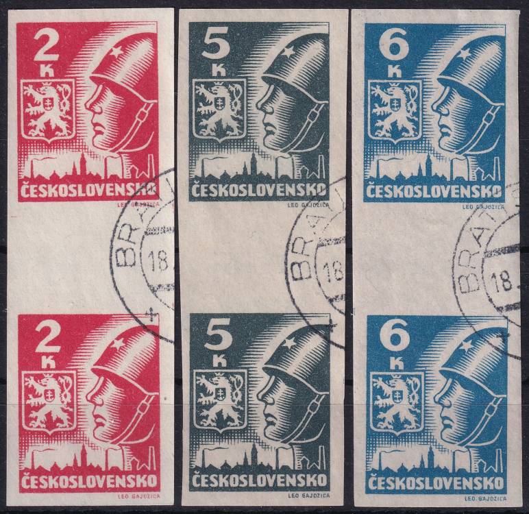 1945, ČSR II, 0354/0356Ms(2), Výplatní známky: Košické vydání - Hlava rudoarmějce a státní znak ⊙