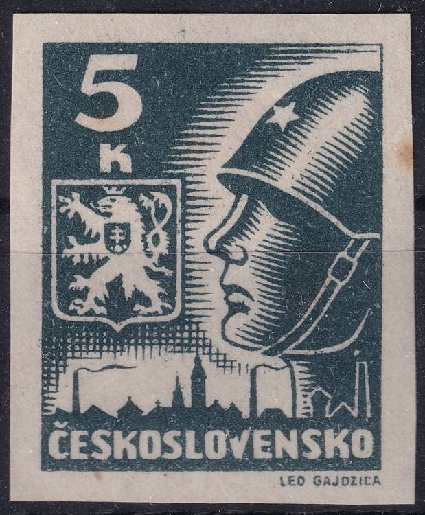 1945, ČSR II, 0355DV, Výplatní známka: Košické vydání - Hlava rudoarmějce a státní znak ✶