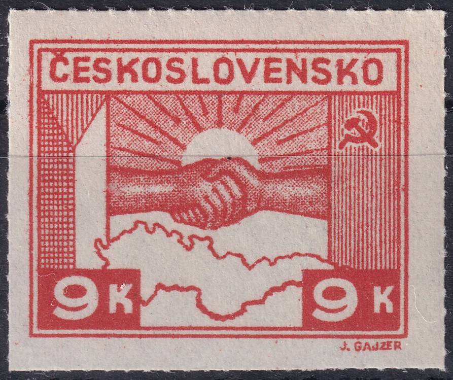 1945, ČSR II, 0357, Výplatní známka: Košické vydání: Symbol spojenectví ČSR-SSSR ✶✶