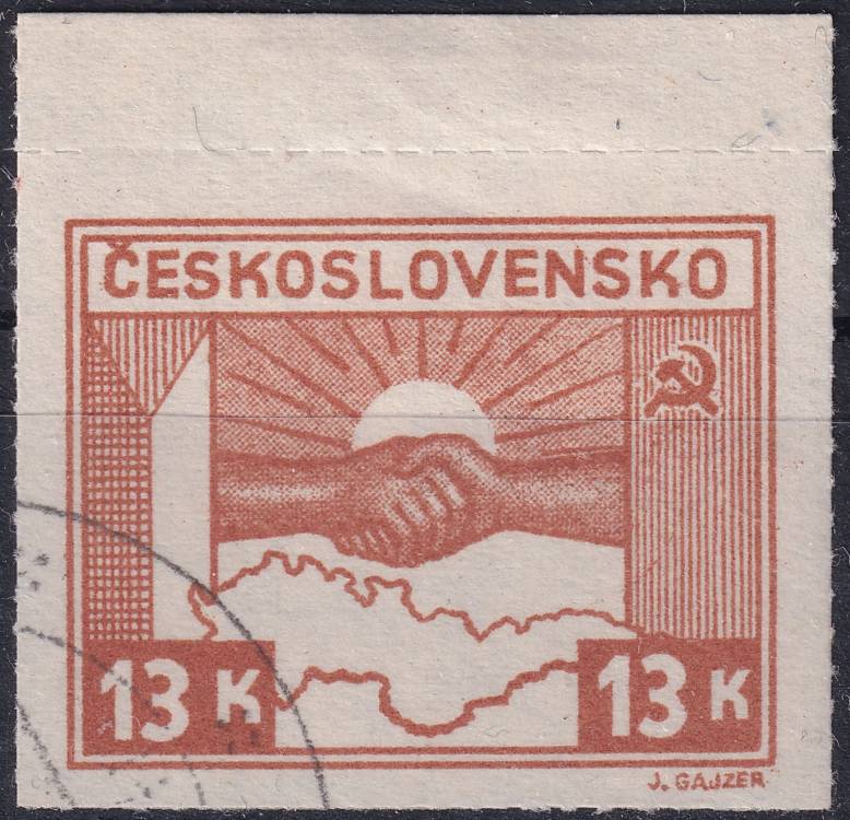 1945, ČSR II, 0358, Výplatní známka: Košické vydání: Symbol spojenectví ČSR-SSSR ⊙ o H