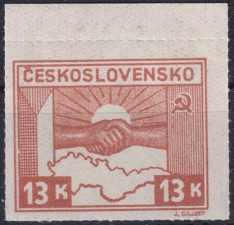 1945, ČSR II, 0358VV, Výplatní známka: Košické vydání - Symbol spojenectví ČSR-SSSR ✶✶ o H