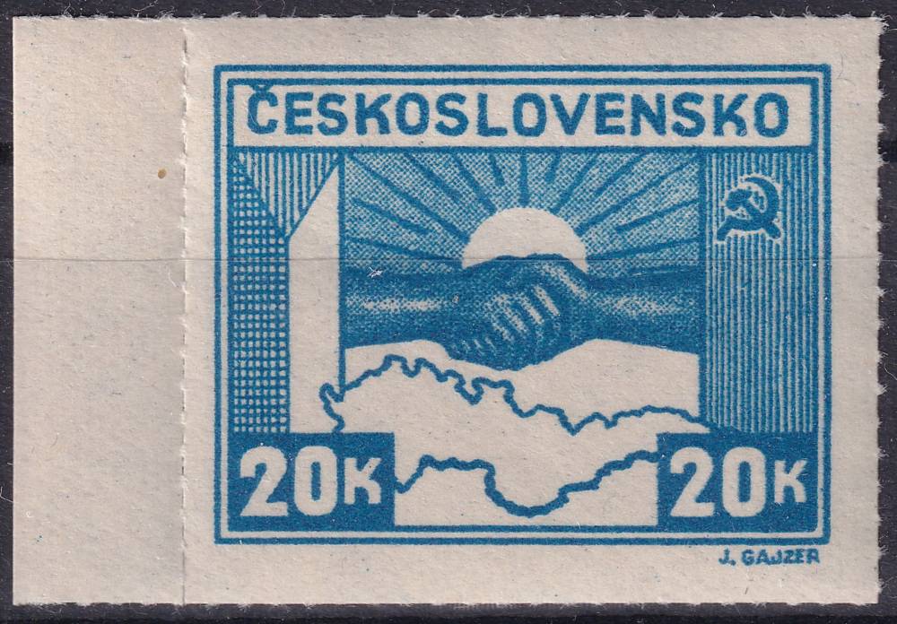 1945, ČSR II, 0359, Výplatní známka: Košické vydání: Symbol spojenectví ČSR-SSSR ✶✶ o L