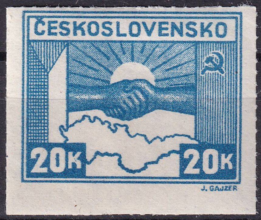 1945, ČSR II, 0359PV, Výplatní známka: Košické vydání - Symbol spojenectví ČSR-SSSR ✶✶