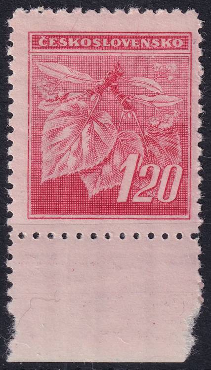 1945, ČSR II, 0378VV, Výplatní známka: Lipová ratolest ✶✶ o D