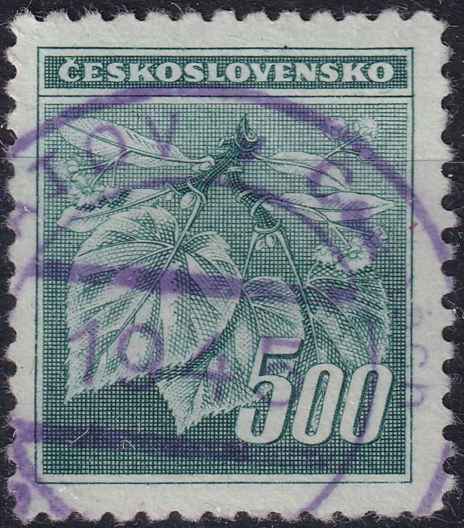 1945, ČSR II, 0380, Výplatní známka: Lipová ratolest ⊙