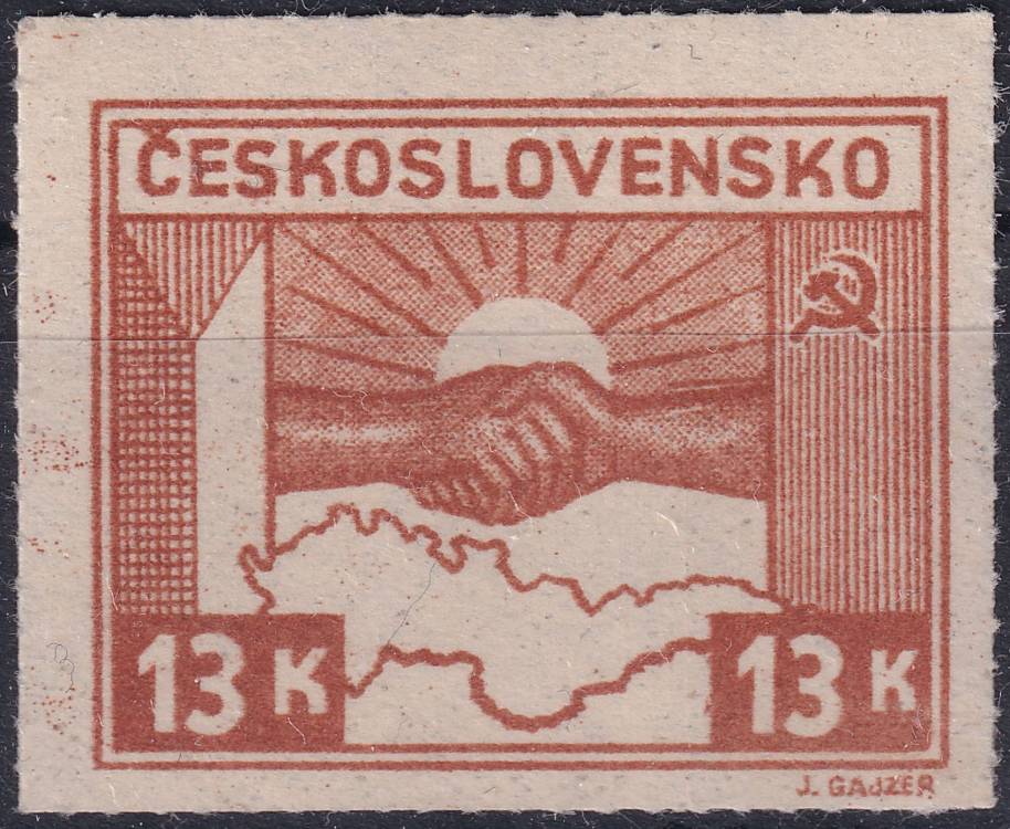 1945, ČSR II, 0358VV, Výplatní známka: Košické vydání - Symbol spojenectví ČSR-SSSR ✶✶
