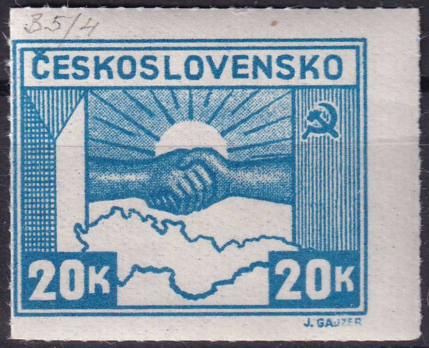1945, ČSR II, 0359DV+PV, Výplatní známka: Košické vydání - Symbol spojenectví ČSR-SSSR ✶✶