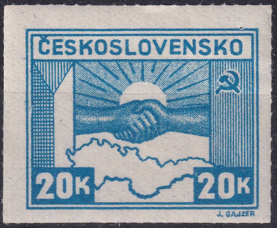 1945, ČSR II, 0359PV, Výplatní známka: Košické vydání - Symbol spojenectví ČSR-SSSR ✶✶