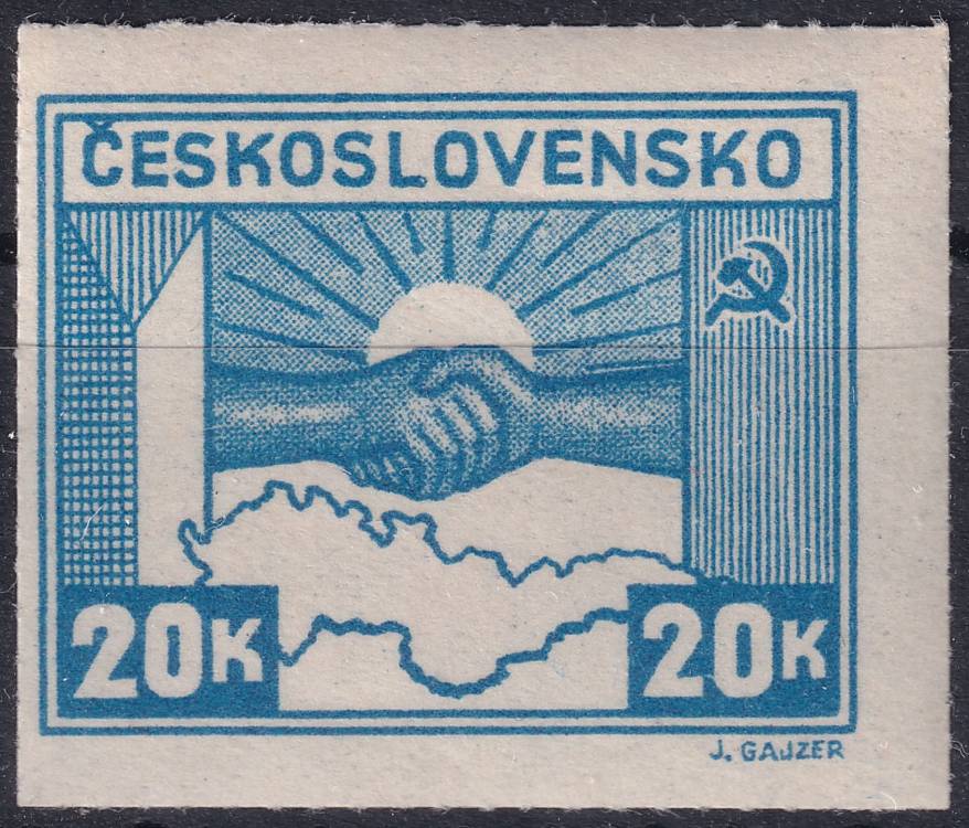 1945, ČSR II, 0359PV, Výplatní známka: Košické vydání - Symbol spojenectví ČSR-SSSR ✶✶