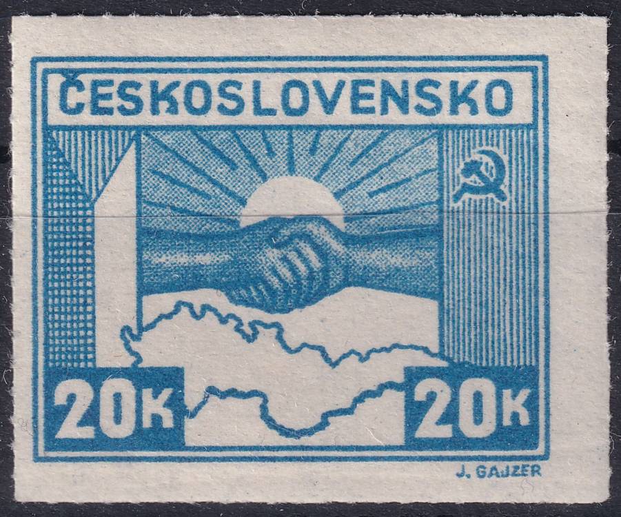 1945, ČSR II, 0359PV, Výplatní známka: Košické vydání - Symbol spojenectví ČSR-SSSR ✶✶