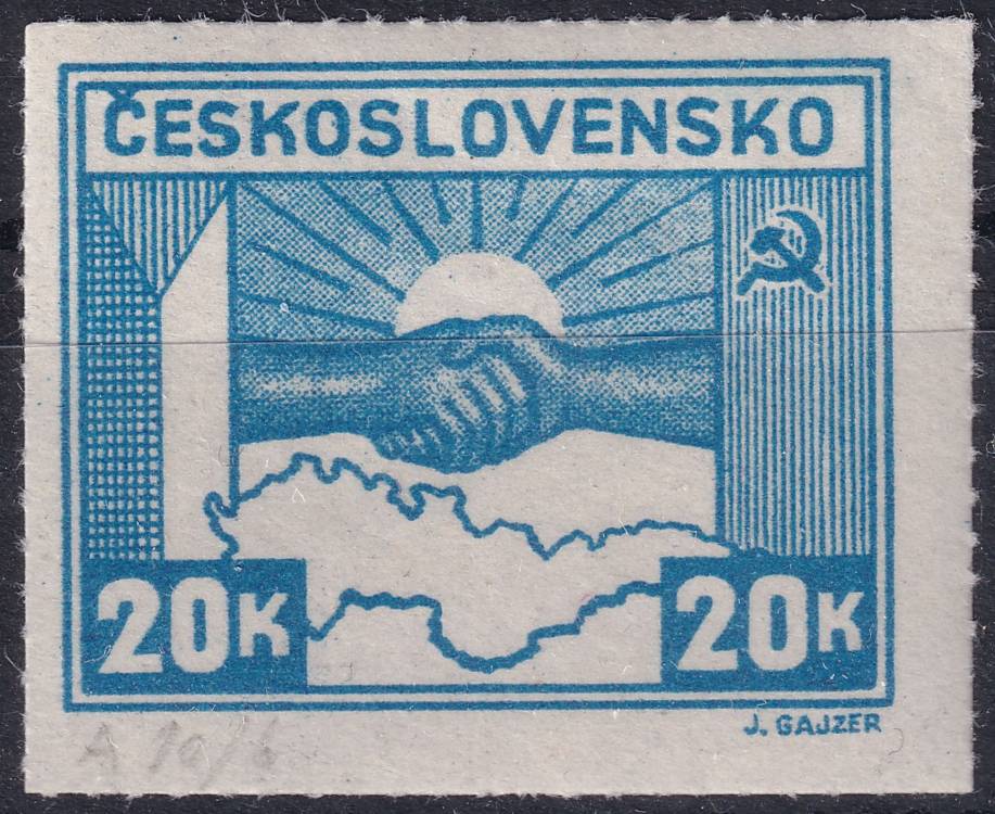 1945, ČSR II, 0359PV, Výplatní známka: Košické vydání - Symbol spojenectví ČSR-SSSR ✶✶