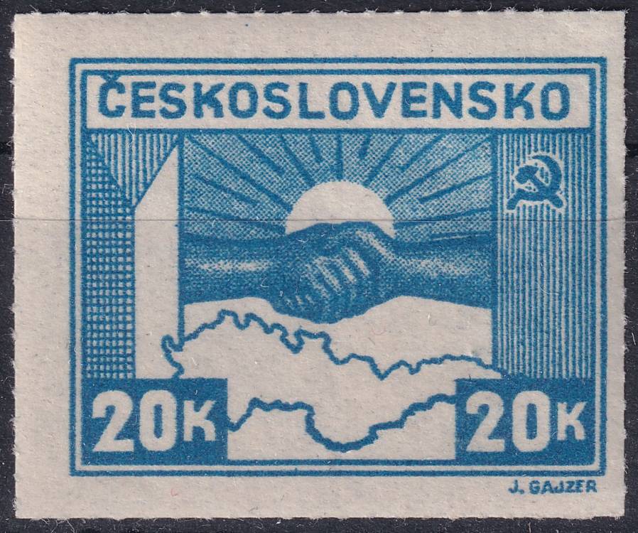 1945, ČSR II, 0359PV, Výplatní známka: Košické vydání - Symbol spojenectví ČSR-SSSR ✶✶