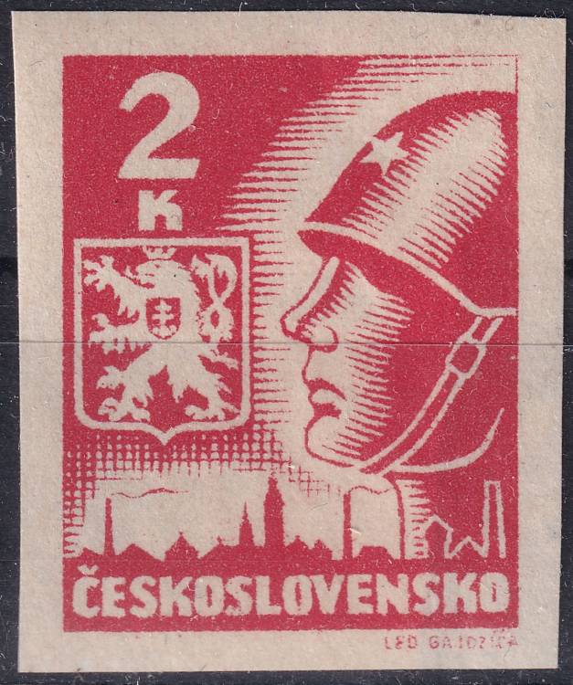 1945, ČSR II, 0354, Výplatní známka: Košické vydání: Hlava rudoarmějce a státní znak ✶
