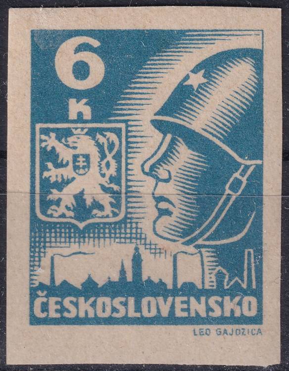 1945, ČSR II, 0356, Výplatní známka: Košické vydání: Hlava rudoarmějce a státní znak ✶