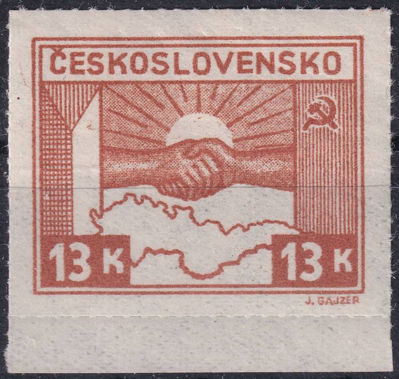 1945, ČSR II, 0358, Výplatní známka: Košické vydání: Symbol spojenectví ČSR-SSSR ✶ o D