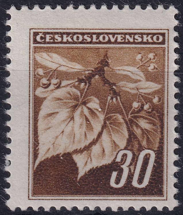 1945, ČSR II, 0373VV, Výplatní známka: Lipová ratolest ✶✶