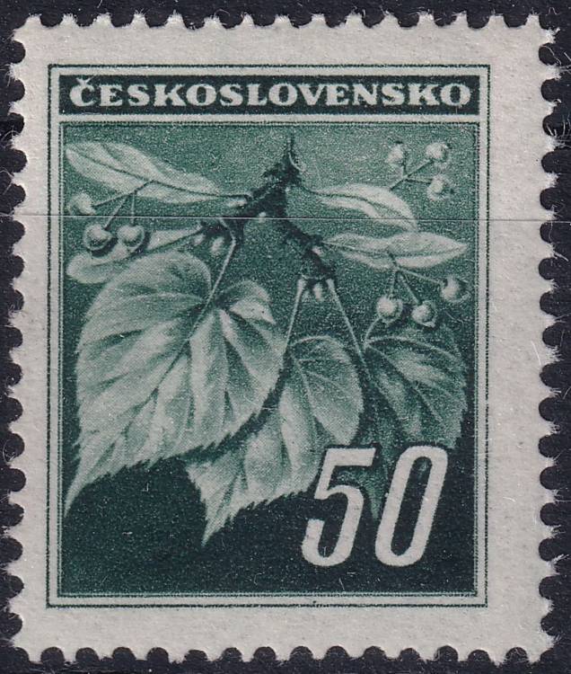 1945, ČSR II, 0374VV, Výplatní známka: Lipová ratolest ✶✶