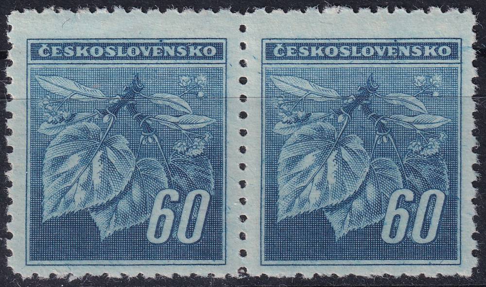 1945, ČSR II, 0376VV, Výplatní známka: Lipová ratolest ✶✶ ⊟