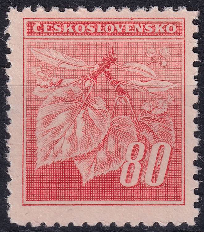 1945, ČSR II, 0377VV, Výplatní známka: Lipová ratolest ✶✶