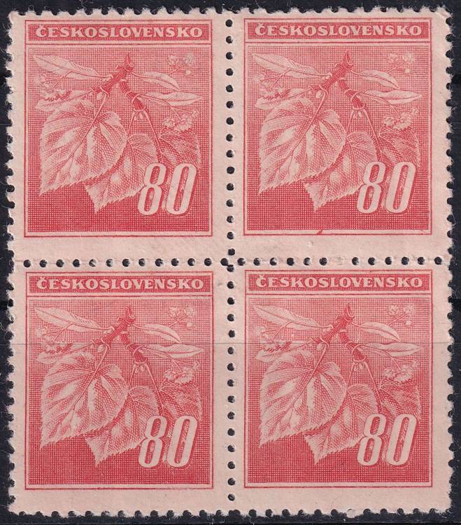 1945, ČSR II, 0377VV, Výplatní známka: Lipová ratolest ✶✶ ⊞